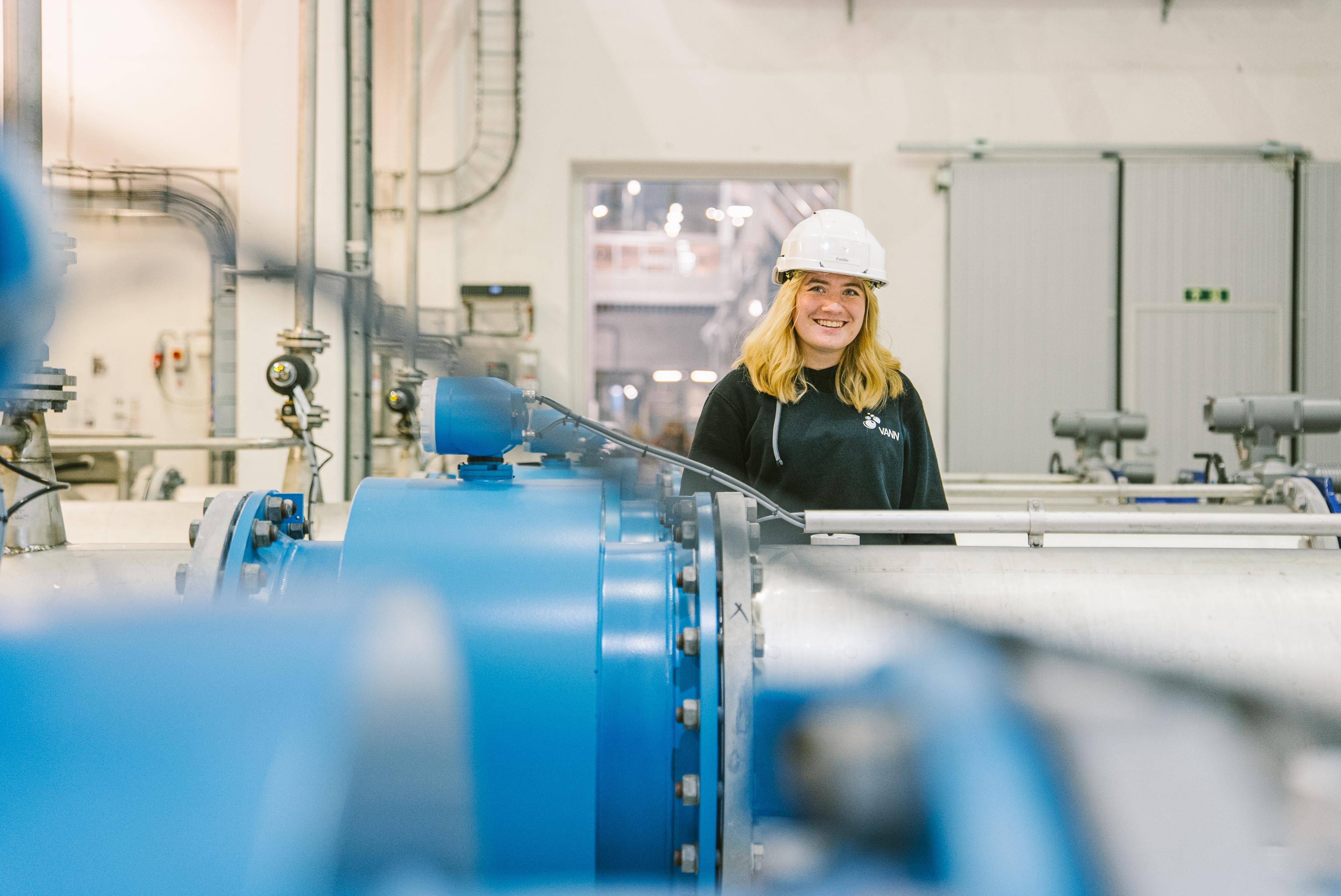 Som lærling i prosessfaget, sørger Emilie Vikan for at vannet går gjennom avanserte rensetrinn.